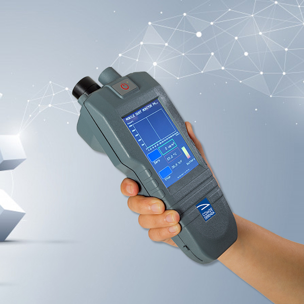 • Nguyên lý đo: Không khí được hút vào với tốc độ khoảng 0.3L/min.  Ở bên trong thiết bị, ánh sáng ra từ diode laser đi vào buồng đo theo đường dẫn quang. Ánh sáng được phản xạ bởi các hạt lơ lửng được thu lại bởi một đầu dò quang học đặt ở góc 90o. Tín hiệu điện được tạo ra bởi đầu dò và sau đó được khuếch đại và cường độ của tín hiệu này đại diện cho một nồng độ đo được trong buồng đo. Do bước sóng đã được lựa chọn, phần bụi PM2.5 chiếm ưu thế trong tín hiệu đo của đầu dò, cho phép ta xác định trực tiếp nồng độ PM2.5. Nồng độ PM2.5 được hiển thị trên màn hình cảm ứng theo thời gian thực.